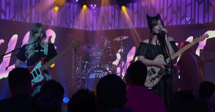 ワイト島のロックバンド、Wet Legが今週初めに、アメリカのトーク番組”Jimmy Kimmel Live”に出演し、シングル「Chaise Longue」を披露しています。この曲は下記で聴くことができます。